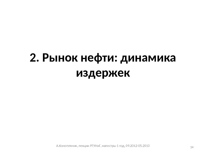 2. Рынок нефти: динамика издержек А. Конопляник, лекции РГУНи. Г, магистры 1 год, 09. 2012 -05.