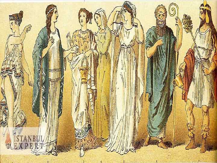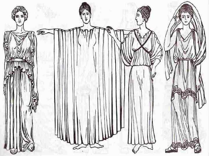 Ткани и формы костюма Изначально, для одежды выбирали тонкую и грубую шерстяную или льняную ткань. Афинские женщины в период расцвета древнегреческой культуры носили одежды из полупрозрачной ткани-вуали, а позже – из хлопка и шелка. Исключительным, изысканным цветом считался белый, пурпурный, фиолетовый, терракотовый, розовый, шафрановый, синевато-зеленый, голубой, коричневый цвета. Одноцветные тона костюмов украшали каймовыми узорами. Женский пеплос и мужской хлен изготавливался из массивной и тяжелой шерстяной ткани, которая крепилась на плечах. Со временем, на их смену пришел хитон с небольшими складками, который надевался на обнаженное тело. Его носили все сословия, с той лишь разницей, что богатые греки использовали более дорогие ткани.