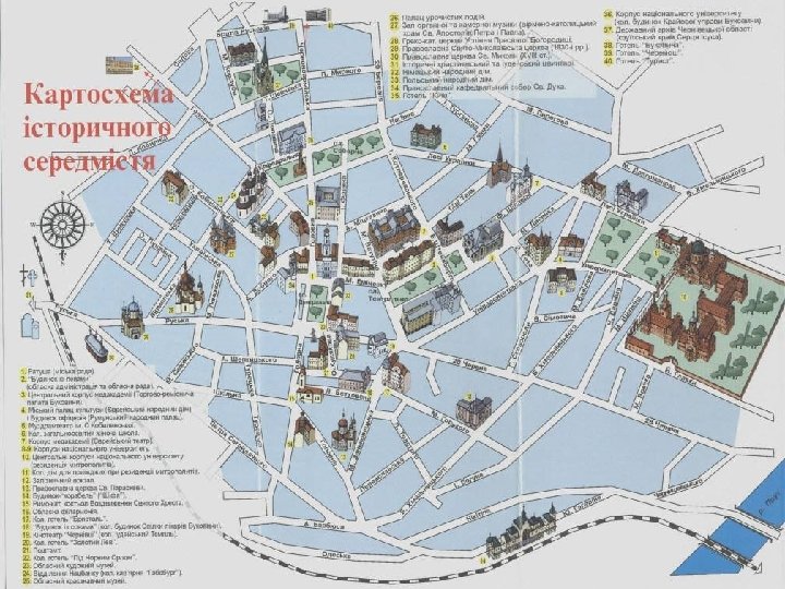 Центральная площадь • • Центральная площадь с городской ратушей, театр, особняки и дома в австрийском стиле — все кажется необычным. Смешение эпох, этносов, культур и идеологий господствовавших здесь стран сформировало эклектичную композицию города. Как и в любом европейском городе, в центре Черновцов есть рыночная площадь(в Черновцаx она называется Центральной, при Австрии она называлась Рингплац, при Румынии — Пята Унирии) с ратушей (построена в 1847 году по проекту Андрея Микулича в стиле позднего классицизма).