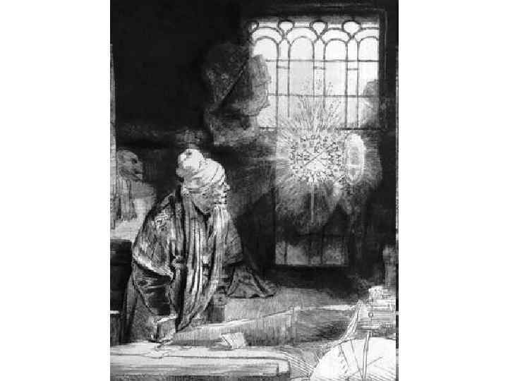 Фауст в культурном сознании Европы • Кристофер Марло «Трагическая история доктора Фауста» (16 в. ) • Рембрандт Фауст (17 в. ) • Гёте Фауст (18 в. ) • Пушкин Сцена из Фауста (19 в. ) • А. Шнитке Кантата «История доктора Иоганна Фауста» (20 в)