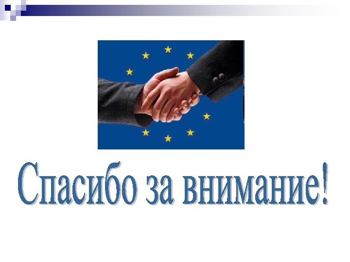 Вступление в ЕС Соответствие Копенгагенским критериям (июнь 1993; декабрь 1995) n Соблюдение демократическим принципам n ¨ принцип свободы ¨ принцип уважения прав человека ¨ принцип правового государства Конкурентоспособная рыночная экономика n Признание правил и стандартов ЕС n