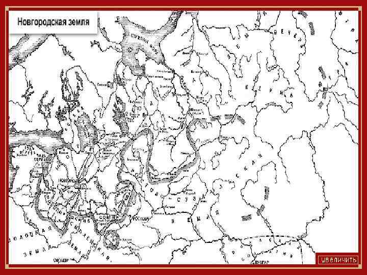 Новгородская боярская республика Крупнейший центр на северо западе Руси. Новгородская земля развивалась по особому пути: • находилась далеко от кочевников и не испытывала ужаса их набегов; • богатство заключалось в наличии громадного земельного фонда, попавшего в руки местного боярства, выросшего из местной родо племенной знати; • своего хлеба в Новгороде не хватало, но промысловые занятия — охота, рыболовство, солеварение, производство железа, бортничество — получили значительное развитие и давали боярству немалые доходы;