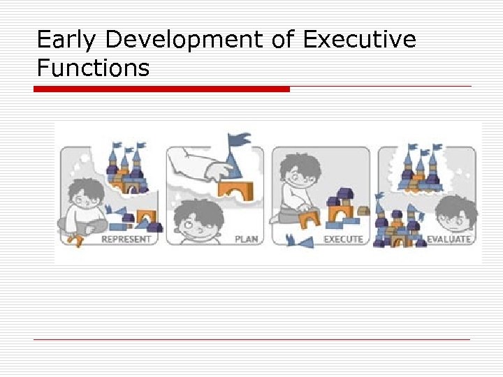 How are EF’s measured o In addition to psychometric tests: n Clinical interview n Behavioral observations n Rule out problems in basic sensory, motor, and cognitive functioning are ruled out (e. g. vision, hearing, memory & learning, basic attention, & visual spatial skills)