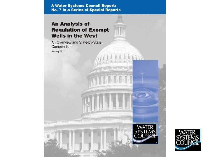 Overview • Exempt Wells Generally • Water Systems Council publication • Oregon Exempt Well Regulations • Overview of regulations across the country • Overview of litigation across the country • Conclusions www. watersystemscouncil. org