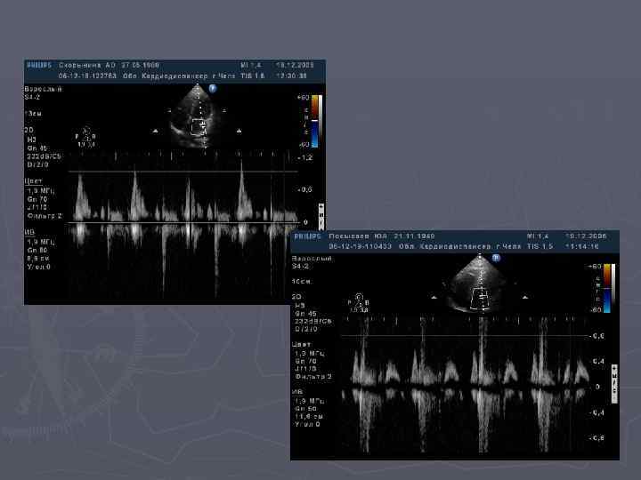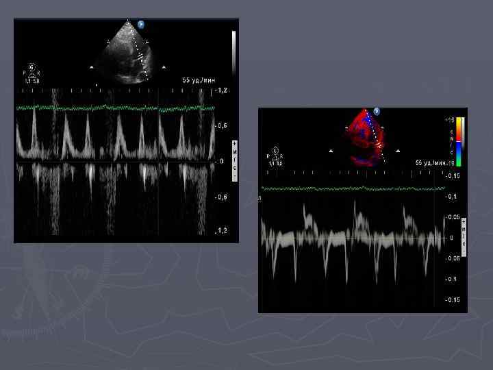 d. P/d. T-скорость нарастания давления в ЛЖ самый точный показатель, отражающий сократимость ЛЖ Можно рассчитать только при наличии митральной регургитации Нормальная сократимость – d. P/d. T > 1200 мм рт. ст. ► Умеренное снижение сократимости – 900 -1200 мм рт. ст. ► Значительное снижение сократимости – 600 -900 мм рт. ст. ► Резкое снижение сократимости - <600 мм рт. ст. ► ► Для ПЖ расчет проводится аналогично, норма>600 мм. рт. ст.