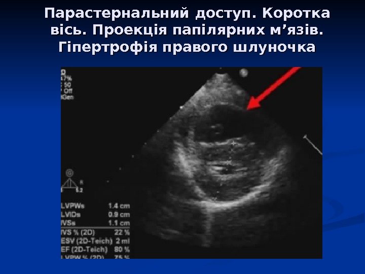 Парастернальний доступ. Коротка вісь. Проекція папілярних м ’’ язяз ів. Гіпертрофія правого шлуночка