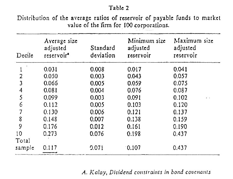 Bond Covenants Restrictions on Dividends Earnings and Stock Sales Dividend Reservoir Dividends