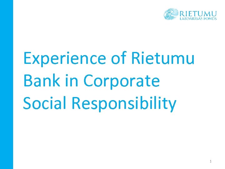 Experience of Rietumu Bank in Corporate Social Responsibility 1