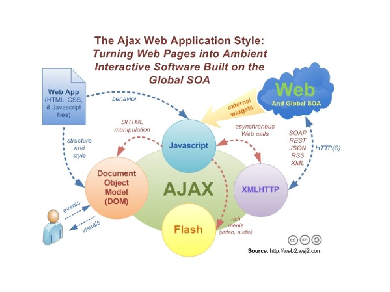 Ajax = Asynchronous Java. Script and XML Not a single technology – rather a group of technologies working together Truly interactive 2. 0 applications Uses XHTML and CSS for markup applications Java. Script or Jscript to interact with display XHR (xmlhttprequest) as API