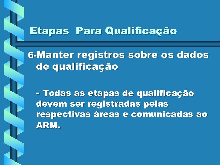 Etapas Para Qualificação 6 -Manter registros sobre os dados de qualificação - Todas as etapas de qualificação devem ser registradas pelas respectivas áreas e comunicadas ao ARM.
