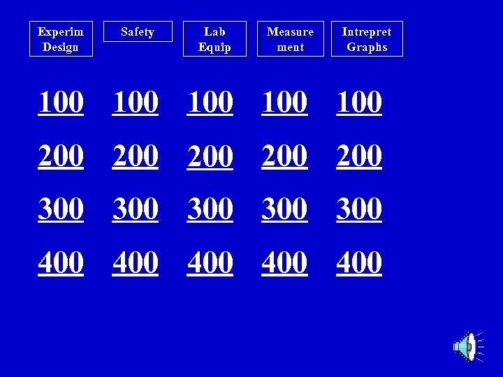 Experim Design Safety Lab Equip Measure ment Intrepret Graphs 100 100 100 200 200 200 300 300 300 400 400 400
