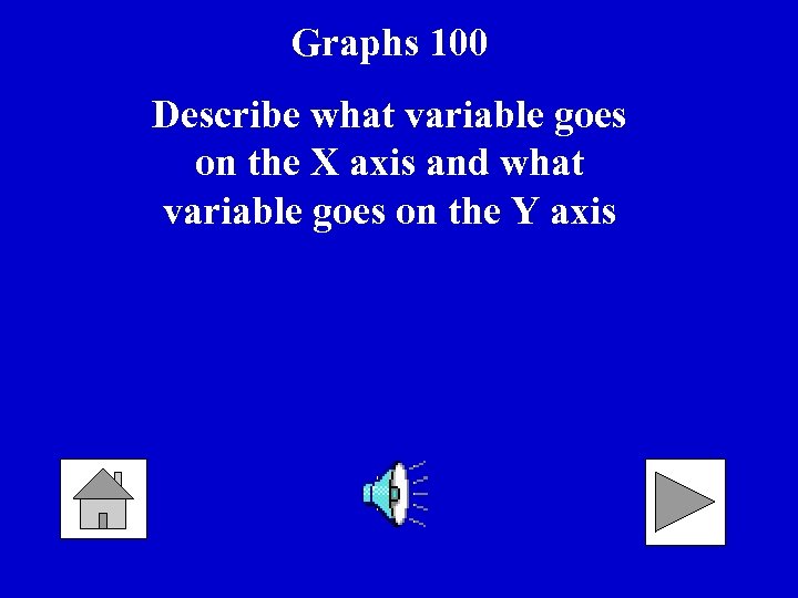 Graphs 100 Describe what variable goes on the X axis and what variable goes on the Y axis