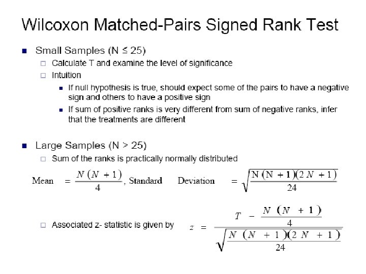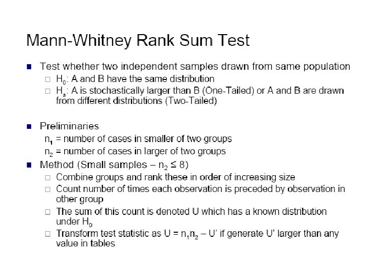 Statistical Analysis: HL Data • Approach 1: nonparametric statistics – If A choice = 1, B choice = 0. Define variable as sum of choices for individual i in treatment t – Higher value implies more risk averse. – Wilcoxon test for matched data (within subjects) – Mann-Whitney test for between subjects design • See appendix slides for details or Siegel & Castellan 1988 • Note: HL protocol is used to understand behavior in other experiments (e. g. auction studies). – Use the risk variable on right side of estimation equation is one way to do this.