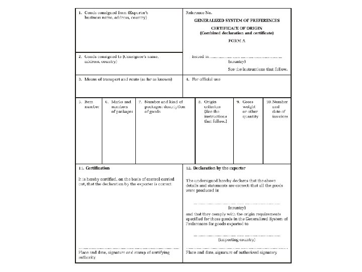 OTHER DOCUMENTS • Customs documents: – Single Customs Declaration (SCD) – Import License – Consular Invoice • Documents related to the goods: – Certificate of Origin (CO or COO) – Dangerous goods declaration – Certificate of Quality – Health and Sanitary Certificates – Packing List