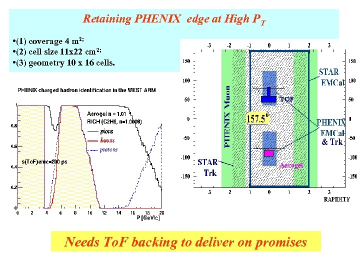 Retaining PHENIX edge at High PT • (1) coverage 4 m 2; • (2) cell size 11 x 22 cm 2; • (3) geometry 10 x 16 cells. TOF Aerogel Needs To. F backing to deliver on promises