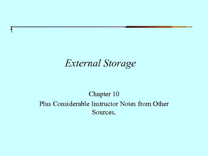 External Storage Chapter 10 Plus Considerable Instructor Notes from Other Sources.