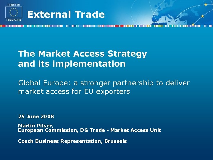 External Trade The Market Access Strategy and its implementation Global Europe: a stronger partnership to deliver market access for EU exporters 25 June 2008 Martin Pilser, European Commission, DG Trade - Market Access Unit Czech Business Representation, Brussels