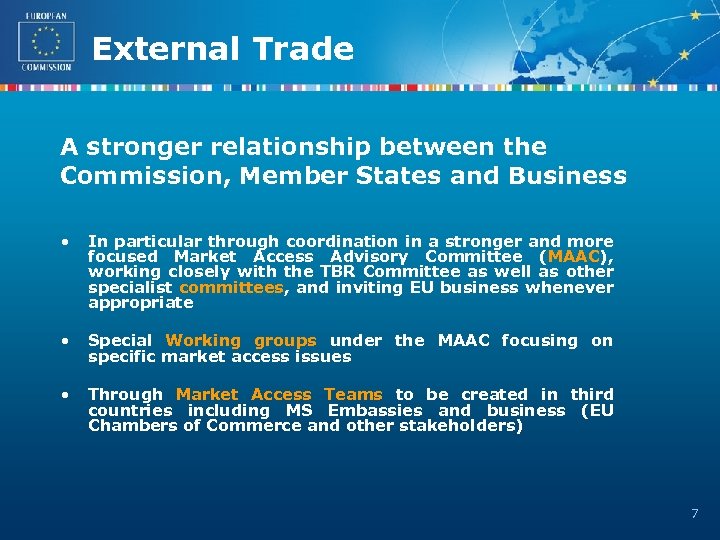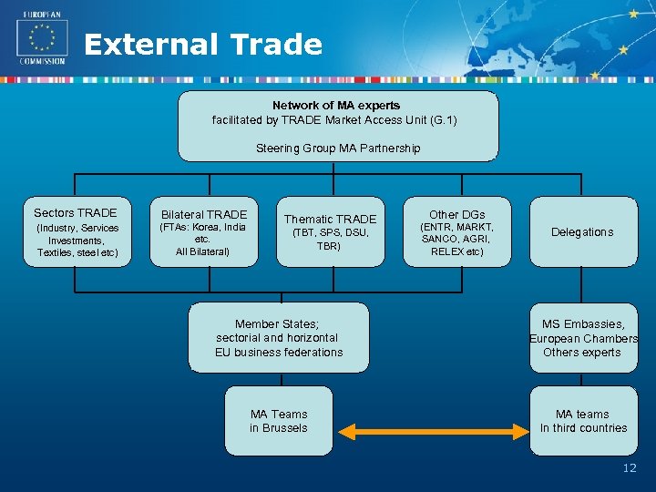 External Trade EU Third Countries MS EU Business MS Embassies MAAC Commission Network Exchange Market Access Teams EU Business Delegations 11