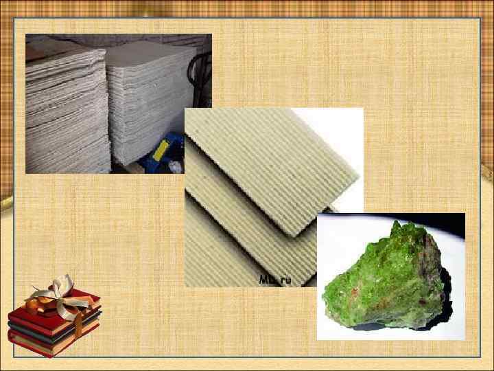 Вывод Изучая по химии физические и химические свойства асбеста мы выяснили, что асбест не вызывает раковых заболеваний, а значит может быть использован в качестве исходного материала в производстве не только продукции для химических и других производств, но может также применяться в домашнем хозяйстве, лабораториях, производстве черепицы, шифера и т. д. материалов. Для уменьшения загрязнения атмосферного воздуха владельцам автотранспорта рекомендуется: • переход, по возможности, на использование газобаллонных двигателей; • качественная регулировка двигателя; • использование нейтрализаторов отработанных газов; • выбор рационального режима работы двигателя; • минимизация количества поездок на автомобиле, по возможности объединение для совместных поездок с соседями или коллегами; • для передвижения на небольшие расстояния - использование велосипеда или пешеходные прогулки. Мероприятия по утилизации бытового мусора - акция «Чистые улицы» - движение волонтёров уборка бытового мусора вдоль дорог, на территории зон отдыха (в том числе реки и озёра); - сбор макулатуры на территории школ и колледжа; - озелените города; - обнаружение родников и их благоустройство; - пропаганда патриотического воспитания (бережное отношение к природе, любовь к Родине).