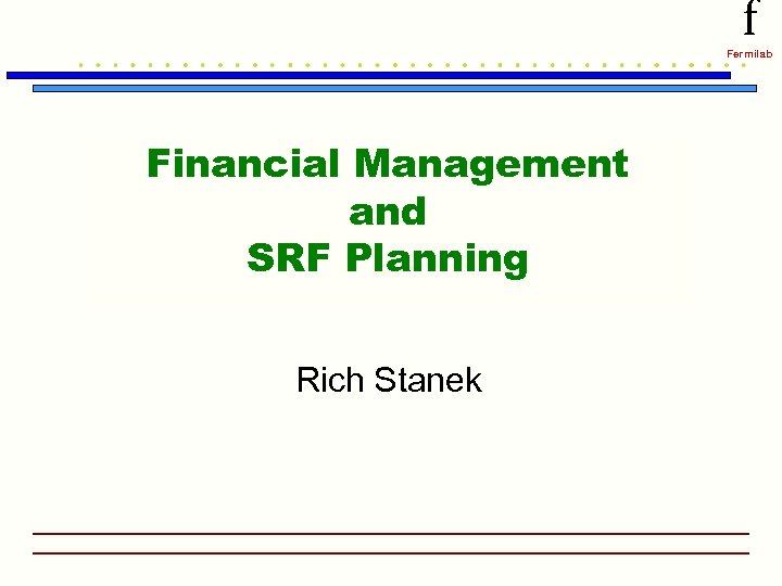 f Fermilab Financial Management and SRF Planning Rich Stanek