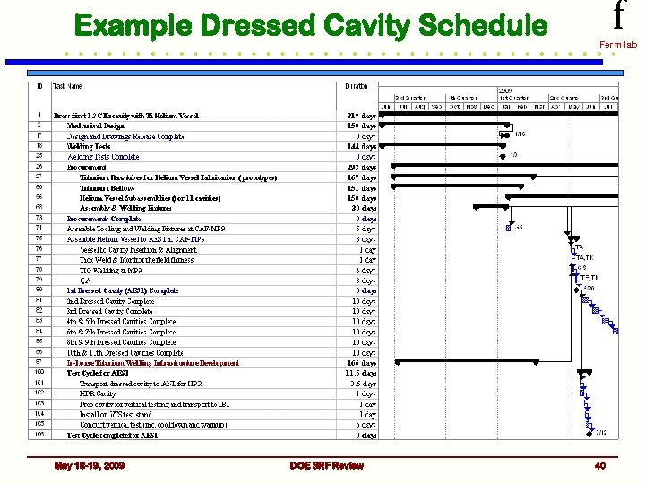 Example Dressed Cavity Schedule May 18 -19, 2009 DOE SRF Review f Fermilab 40