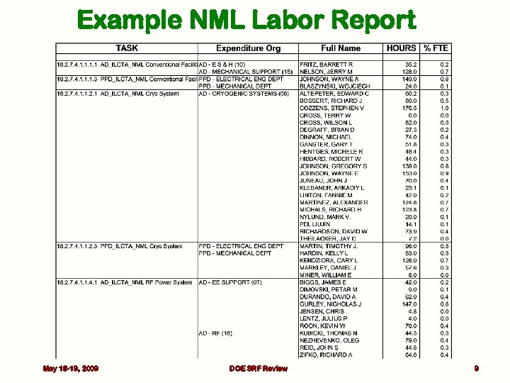 Example NML Labor Report May 18 -19, 2009 DOE SRF Review 9
