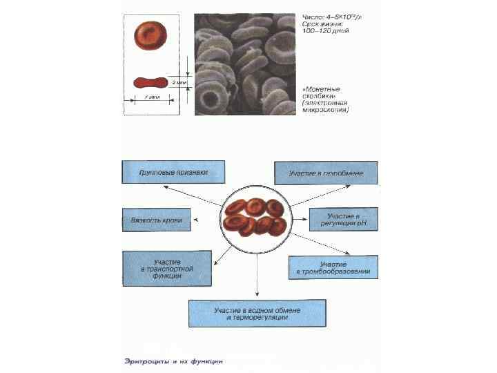 Функции эритроцитов - транспортная (перенос О 2 и СО 2, аминокислот, полипептидов, белков, углеводов, ферментов, гормонов, жиров, холестерина, простагландинов, лейкотриенов и др. БАВ, микроэлементов …); - участие в регуляции КЩР, ионного равновесия плазмы (около 30% буферных свойств крови приходится на долю эритроцитов); - водно-солевой обмен (набухают в венозной крови за счет тканевой жидкости и «отбухают» в артериальной крови и легочных капиллярах за счет отдачи жидкости); - участие в специфическом и неспецифическом иммунитете; - участие в регуляции активности свертывающей системы крови (влияют на образование тромбопластина); - групповые признаки; - вязкость крови.