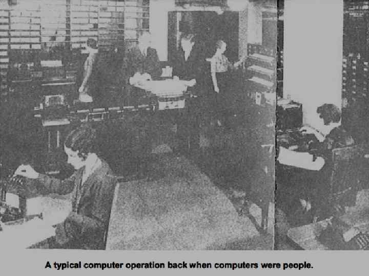 The first computers were …people "Computer" was originally a job title: it was used to describe those human beings (usually women ) whose job it was to perform the repetitive calculations.