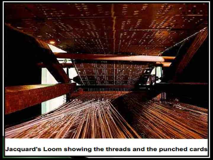 In 1801 the Frenchman Joseph Marie Jacquard invented a power loom that could base its weave upon a pattern automatically read from punched wooden cards, held together in a long row by rope. Descendents of these punched cards have been in use ever since.