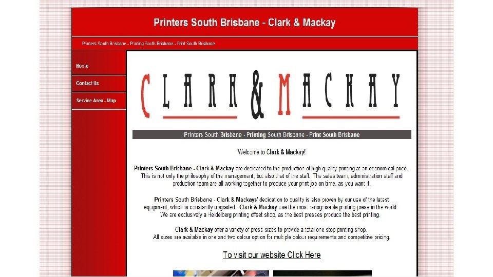 Badly structured website • Website is not designed to support the offline business • Clutter – trying to do too much on one page • Website is just a “brochure”, giving information about the business • Website doesn’t show you differ from your competitors