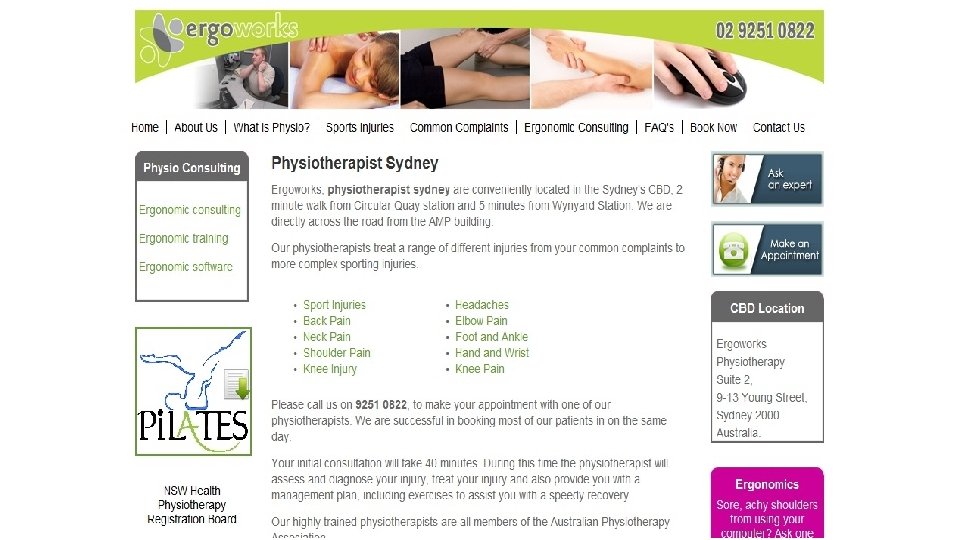 Choosing the right domain name • Check for popular keywords in your niche using the Google Keyword Tool, and use them in your domain name • Use www. leandomainsearch. com • Add your geographical location if you sell locally (eg Physiotherapist. Brisbane) • Buy the. com and the. com. au (if you can’t get both, choose something else)
