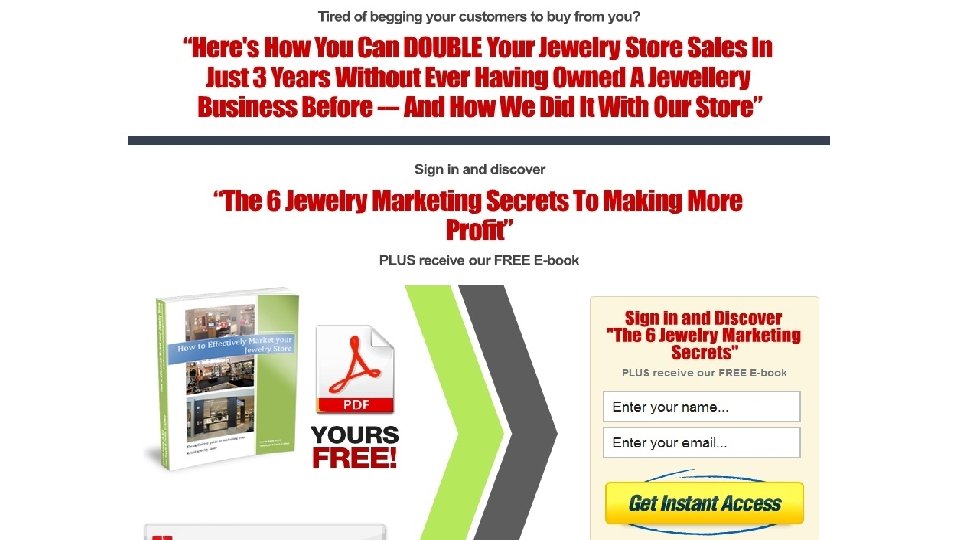 List building mistakes • Opt in is below the fold • No incentive for visitors to give name and email • Using double-opt-in • Asking for too much information • Opt in on the same page as selling (reduces sales by up to 75%) • Not following up to build the relationship • No way to monetise the list