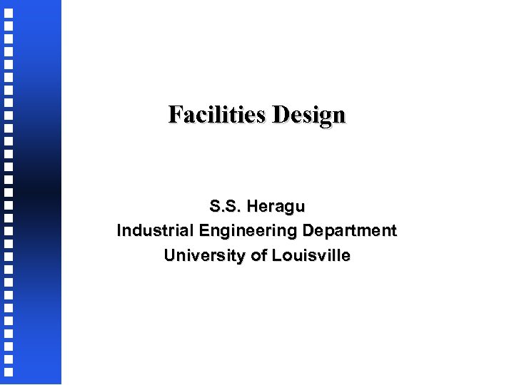 Facilities Design S. S. Heragu Industrial Engineering Department University of Louisville