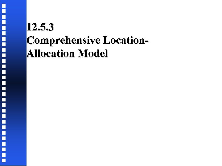 12. 5. 3 Comprehensive Location. Allocation Model