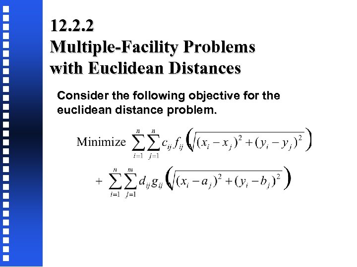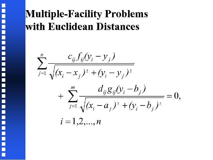 12. 2. 2 Multiple-Facility Problems with Euclidean Distances Consider the following objective for the euclidean distance problem.