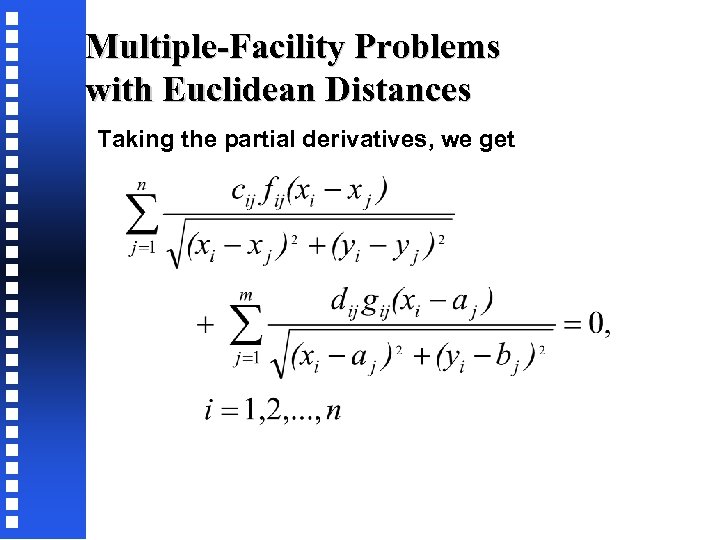 Multiple-Facility Problems with Euclidean Distances Taking the partial derivatives, we get