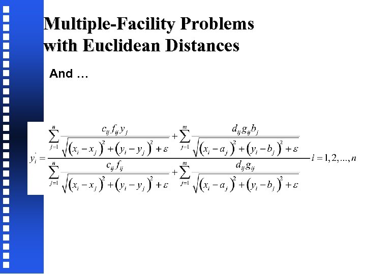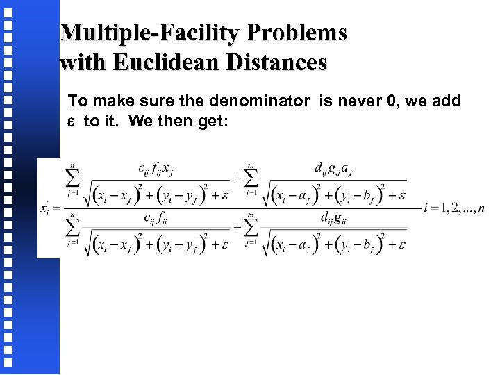 Multiple-Facility Problems with Euclidean Distances To make sure the denominator is never 0, we add to it. We then get: