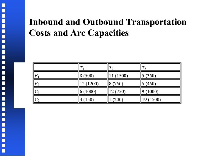Inbound and Outbound Transportation Costs and Arc Capacities