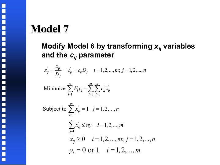 Model 7 Modify Model 6 by transforming xij variables and the cij parameter