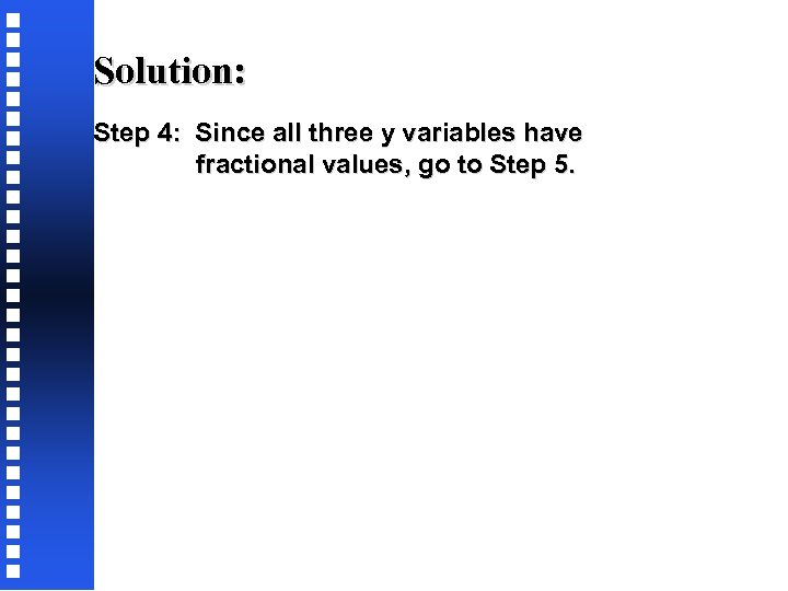 Solution: Step 4: Since all three y variables have fractional values, go to Step 5.
