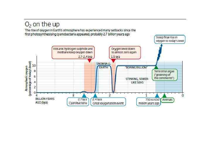 • However, its reactivity made it relatively rare in early Earth's atmosphere. It was much more due to the activity of cyanobacteria and plants. The period of active oxygen generation is called “Great oxygenation event”.