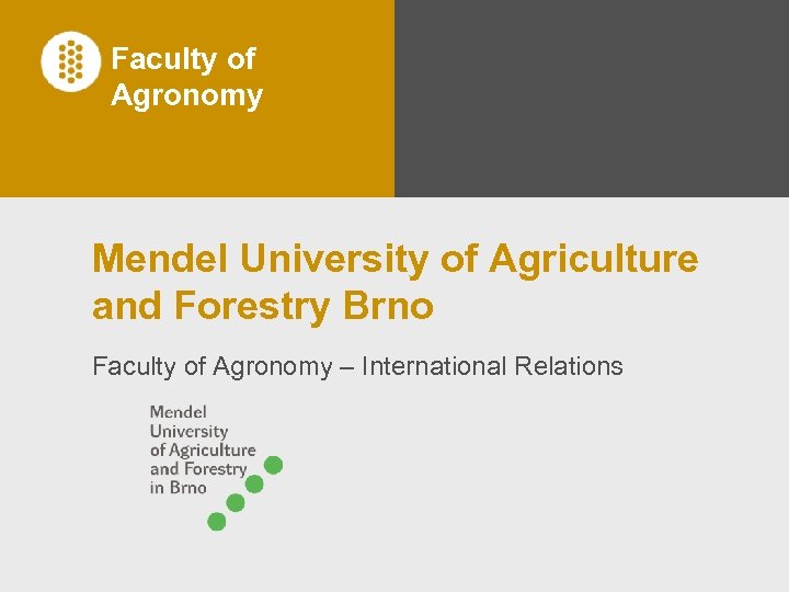 Faculty of Agronomy Mendel University of Agriculture and Forestry Brno Faculty of Agronomy – International Relations