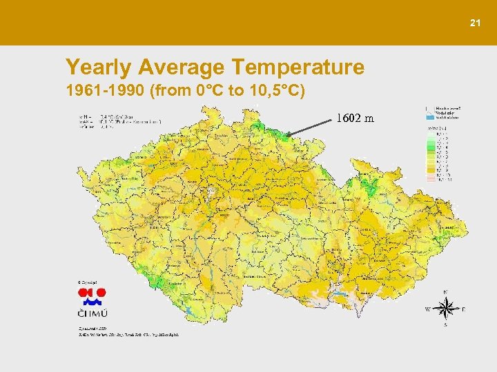 21 Yearly Average Temperature 1961 -1990 (from 0°C to 10, 5°C) 1602 m