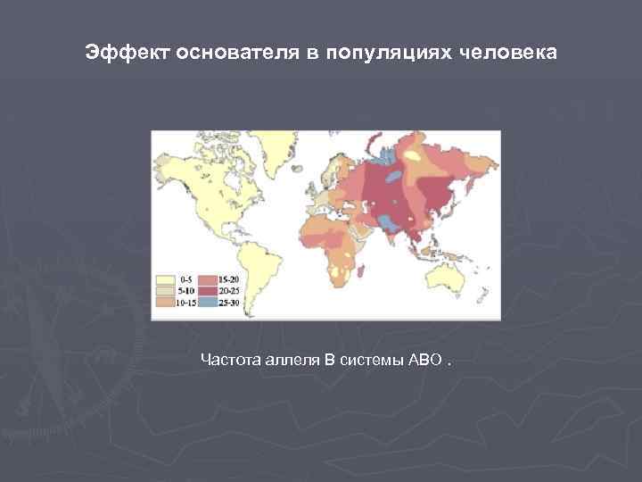 Эффект основателя в популяциях человека Частота аллеля В системы АВО.