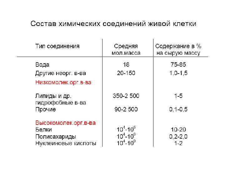 Органические вещества клетки Белки 10 -20% Углеводы 0. 2 -2% Нуклеиновые кислоты 1 -2% Липиды 1 -5%