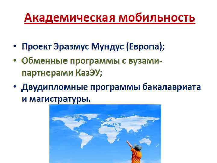 • • • Международные Отношения Финансы Экономика Менеджмент Туризм Учет и Аудит Срок обучения для всех специальностей -4 года. Для выпускников колледжа-3 года.