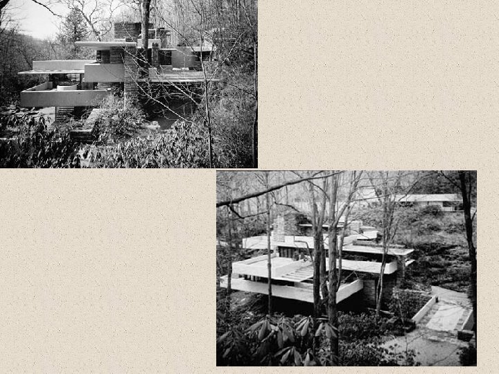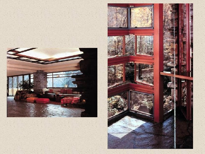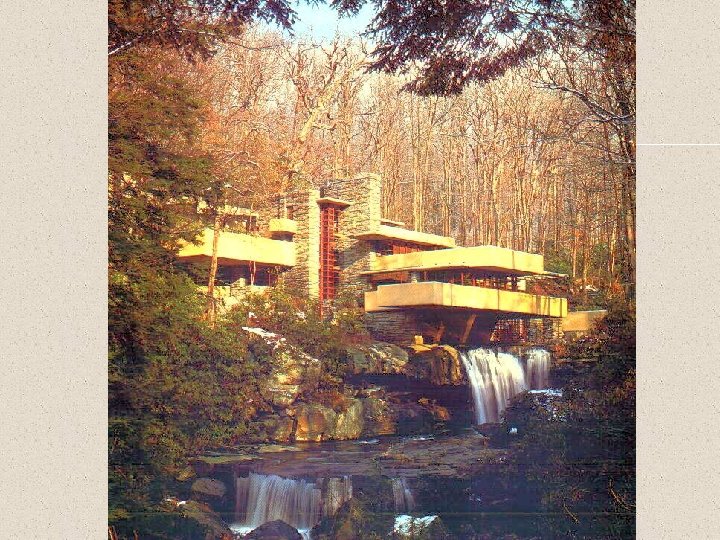 5. - Antecedents i influències posteriors Antecedents: * Deixeble de Sullivan i admirador de l’Escola de Chicago: però Wright no es troba còmode amb el racionalisme fred, que considera mancat de sensibilitat, i proposa una arquitectura en què l’home no és només el punt de partida per organitzar un sistema de proporcions modulars sinó també el punt de partida d’una concepció orgànica de l’edifici que ha de traslluir la seva personalitat. * Arquitectura japonesa: recerca d’espais interns que enllacen amb els externs i s’hi continuen.