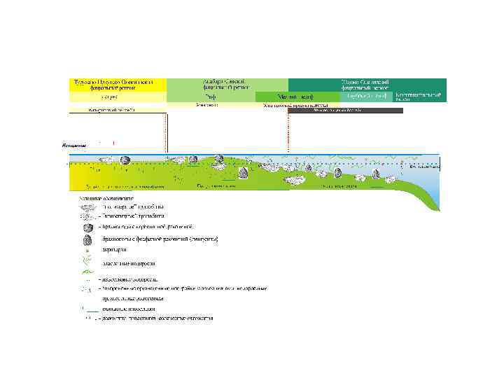Томмотский ярус. Название от пос. Томмот. Стратотип яруса находится на р. Алдан (разрез "Дворцы"), где охватывает верхние 5 м юдомской свиты и всю обнажающуюся в этом разрезе пестроцветную свиту (до подошвы тумулдурской свиты). Мощность яруса в стратотипе 85 м. Для томмотского яруса в целом характерны многочисленные и разнообразные, зачастую проблематичные, мелкораковинные скелетные организмы, морфологически простые археоциаты семейств Monocyathidae, Dokidocyathidae, Ajacicyathidae и др. , а также губки, моллюски, брахиоподы, известковые водоросли. Атдабанский ярус. Название яруса происходит от пос. Атдабан. Стратотип находится на р. Лене (от пос. Ой Муран до руч. Улахан Кыыры Таас. В стратотипе, расположенном в зоне перехода от шельфа к верхнему склону открытого бассейна, к нему относится верхняя часть пестроцветной свиты (8 65 м) и две нижние пачки переходной свиты (около 30 м). Около 100 м разреза яруса здесь не вскрыты. Для атдабанского яруса в целом характерны бурный расцвет археоциат, появление форм со сложно устроенными наружной и внутренней стенками (семействами Tumulocyathidae, Densocyathidae, Bronchocyathidae и др. ), появление, становление и первые этапы развития трилобитов, среди которых преобладают представители подотряда Olenellina, а несколько позднее ‑ Eodiscina. Отмечаются интенсивное развитие и существенные изменения в составе других групп организмов, таких как мелкораковинная фауна, брахиоподы.