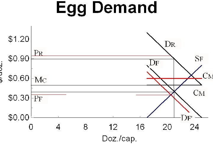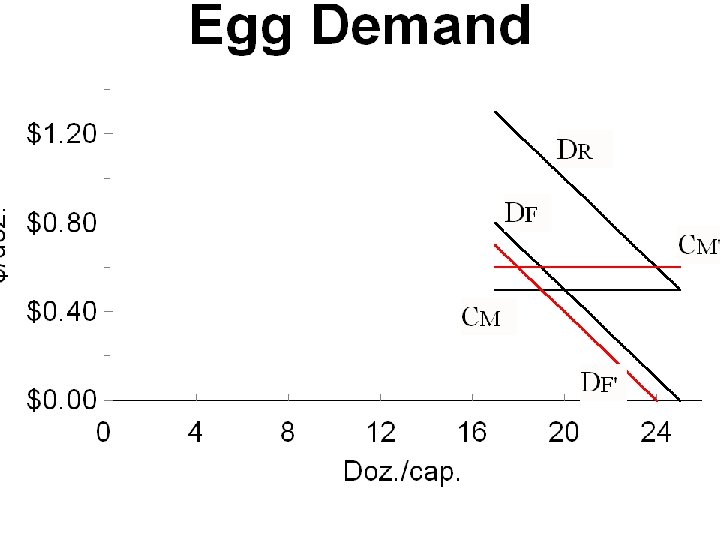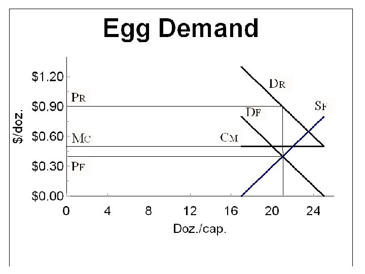 Egg Demand Quantity Doz/cap/yr. 17 18 Retail Price $/doz. $1. 30 $1. 20 Marketing Cost Farm Price $0. 50 $0. 80 $0. 70 19 20 21 22 23 24 25 $1. 10 $1. 00 $0. 90 $0. 80 $0. 70 $0. 60 $0. 50 $0. 40 $0. 30 $0. 20 $0. 10 $0. 00