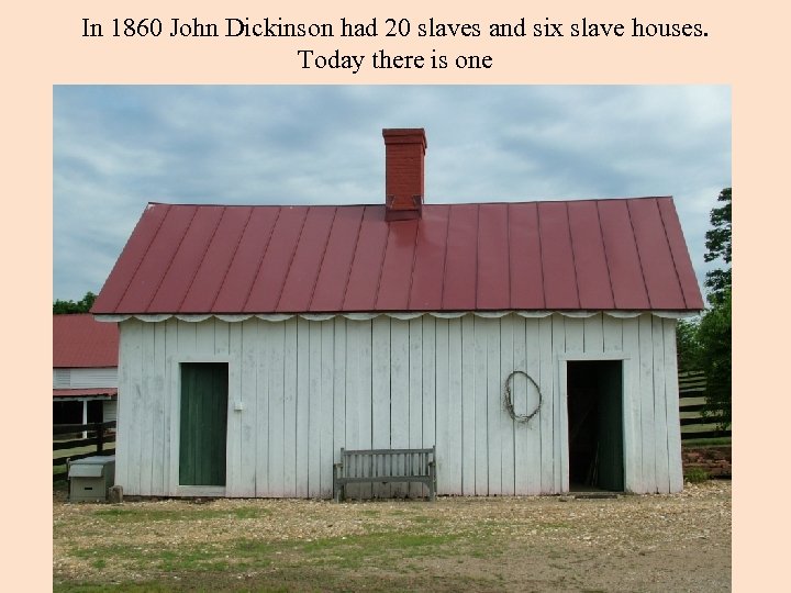 In 1860 John Dickinson had 20 slaves and six slave houses. Today there is one